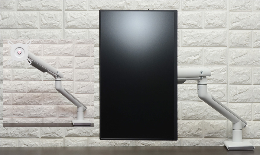 32형 모니터와 좋은 궁합을 보여주는 것은 이 제품의 가장 큰 장점이라 할 수 있다. 후면에 베사홀이 제공되어 ARM에 장착해 세로모드로 32형 모니터 옆에 놓아두면 울트라와이드 모니터를 사용한 듯 자연스러운 모습을 보여주었다. 테스트에서 확인한 것과 같이 메일확인이나 작업에 필요한 소스등을 올려두고 빠르게 적응할 수 있으며 멀티테스킹 용으로 활용할 경우 한눈에 각종 정보를 볼 수 있다.