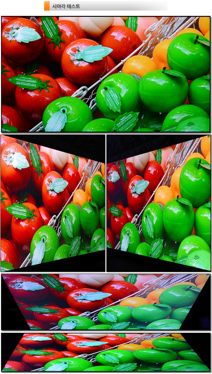 시야각 테스트를 진행하고 있는 모습으로 대기업 IPS 패널을 탑재한 모델답게 극단적인 각도에서도 시야각으로 인한 채도저하나 반전 등은 발생하지 않았으며 선명한 영상을 보여주었다.