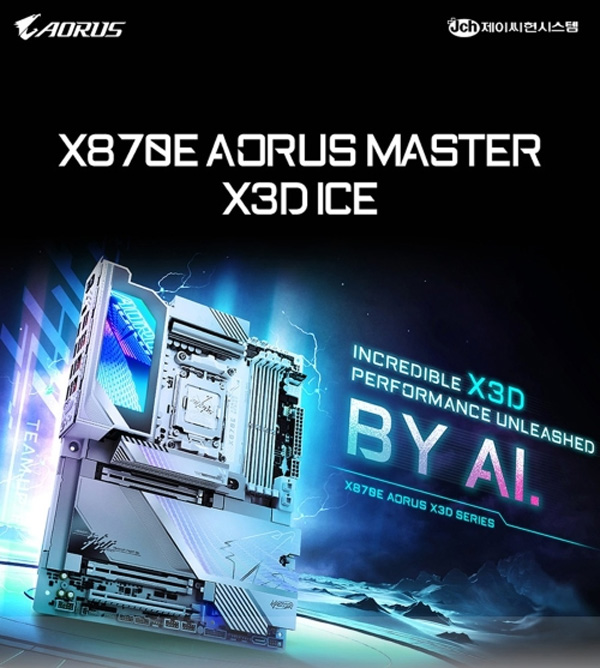 제이씨현시스템은 기가바이트 AORUS X3D 신제품 2종인 X870E AORUS MASTER X3D ICE와 X870E AORUS PRO X3D ICE 메인보드를 공식 출시한다.