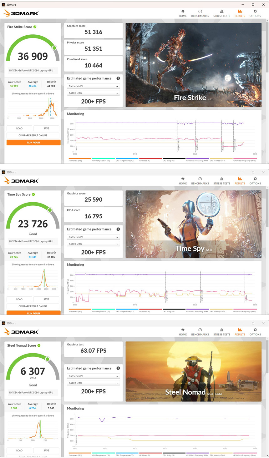 떨어지는 성능 때문에 해상도나 게임 옵션을 조정해야 하는 일반 게이밍 노트북과 달리 대부분의 게임을 최고 해상도와 옵션에서 플레이 할 수 있었다. 압도적인 성능이라는 문구를 사용해도 과장되지 않을만큼 그동안 테스트 했던 게이밍 노트북들과 확연한 차이를 보여준 모델로 대부분의 게임을 쾌적하게 즐길 수 있을 것이다.