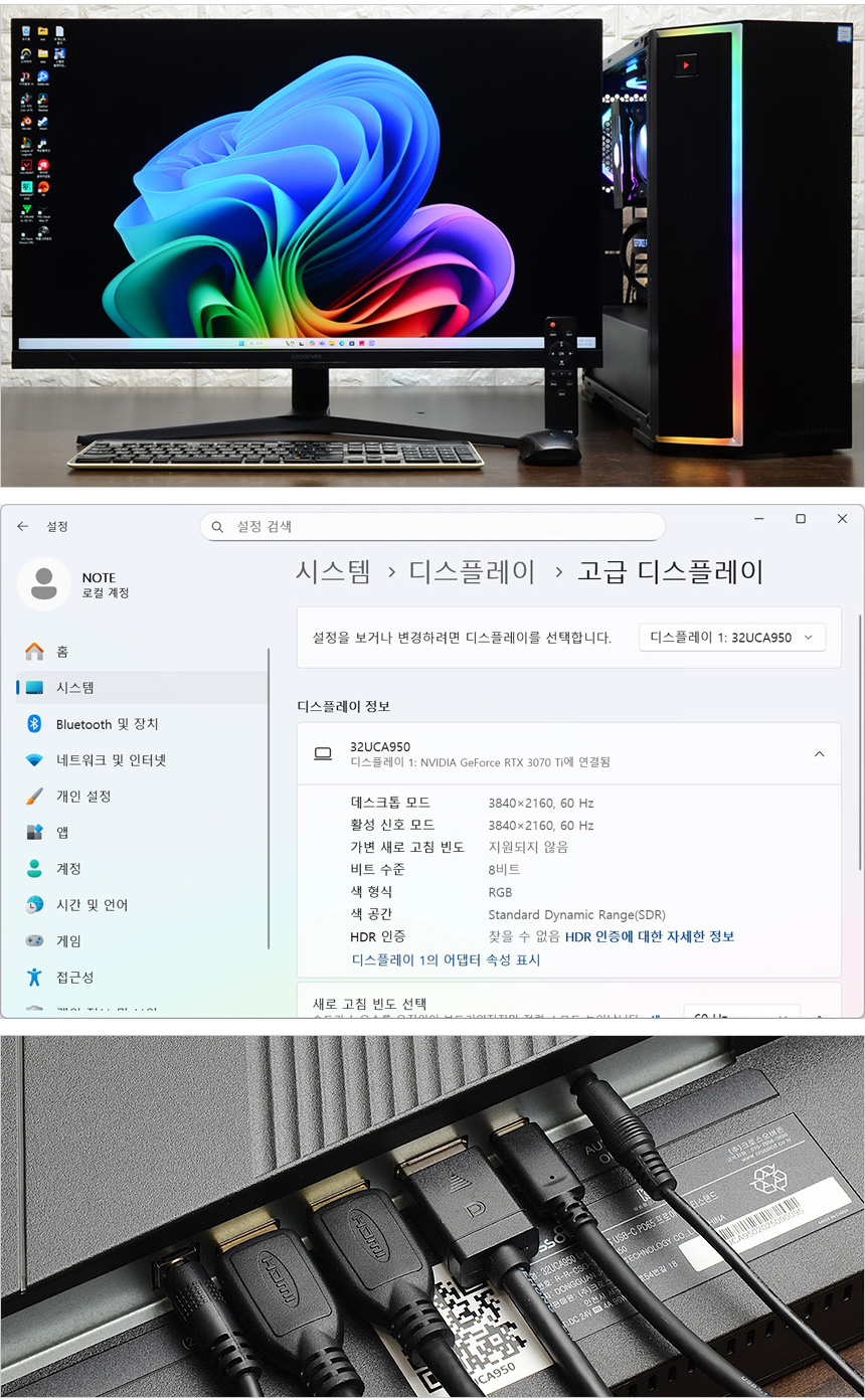 리뷰를 진행한 크로스오버 32UCA950 UHD4K IPS USB-C PD65 프로아트 멀티스탠드 는 전문가용 모니터가 필요한 유저들에게 좋은 대안이 될 것이다. 프리미엄 IPS 모듈 패널 탑재 모델답게 색이 상당히 진하고 높은 밝기를 지원해 생생한 컬러를 보여 주었으며 4K 고해상도 지원으로 일반 모니터와는 확연히 구분되는 높은 디테일을 경험할 수 있었다. (모니터를 켜고 화면을 보는순간 보급형과는 다르다는 느낌이 바로 들었다.)
