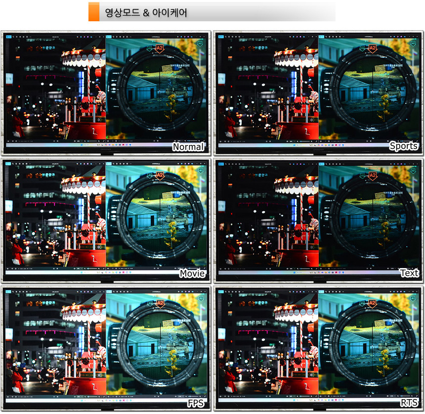 다양한 화면 모드를 제공해 편의성을 높였다. 일일이 밝기와 명암등을 조정하지 않고 컨텐츠나 게임에 맞는 최적의 영상을 편하게 적용할 수 있다.