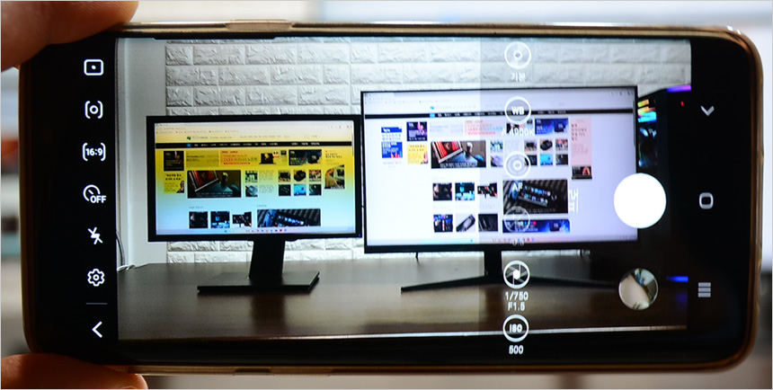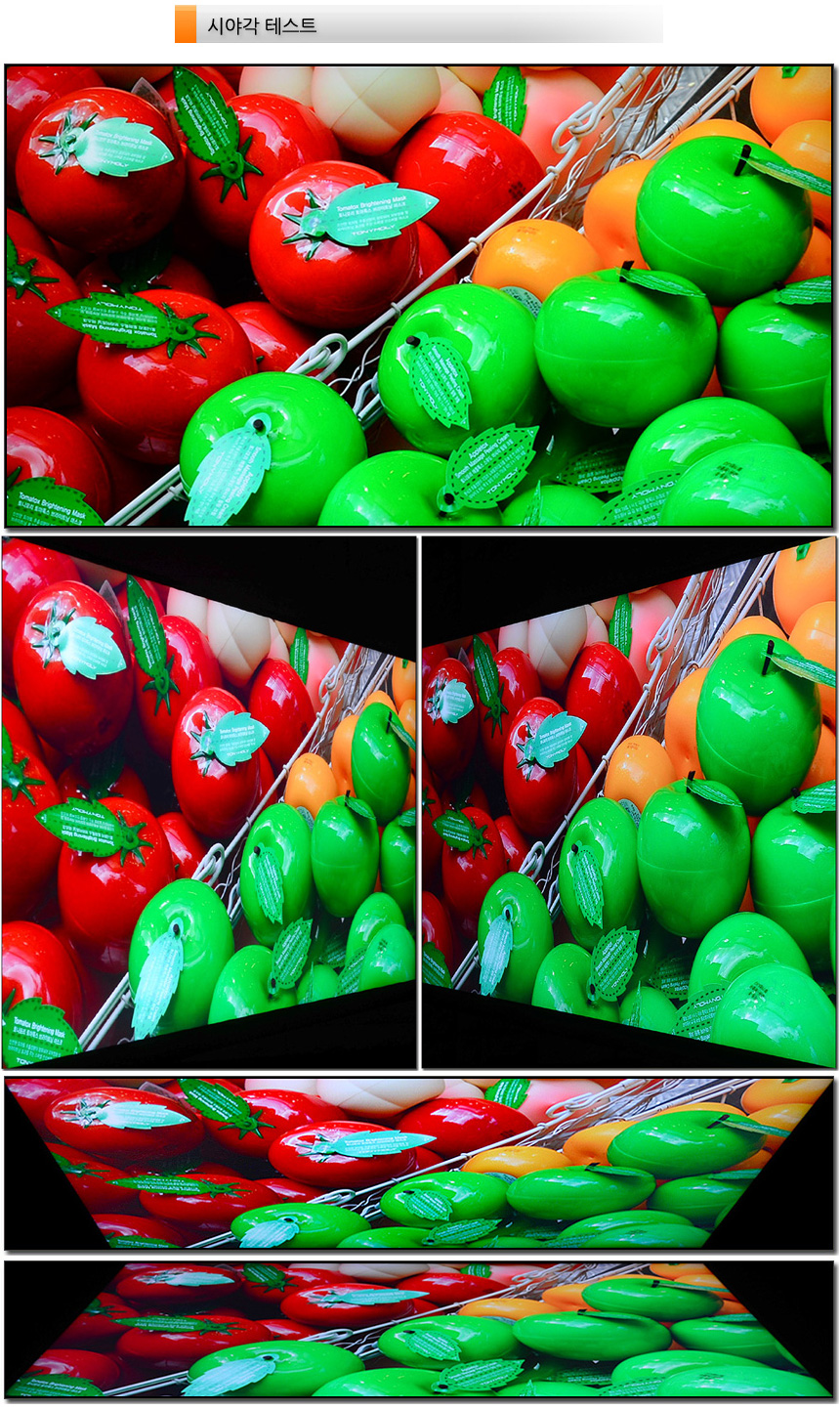 프리미엄 IPS 모듈 패널을 탑재한 모니터 답게 시야각의 불편없이 사용할 수 있다. 상단의 사진은 시야각 테스트를 진행한 모습으로 극단적인 각도에서도 채도저하나 반전은 발생하지 않는 것을 확인할 수 있었다.