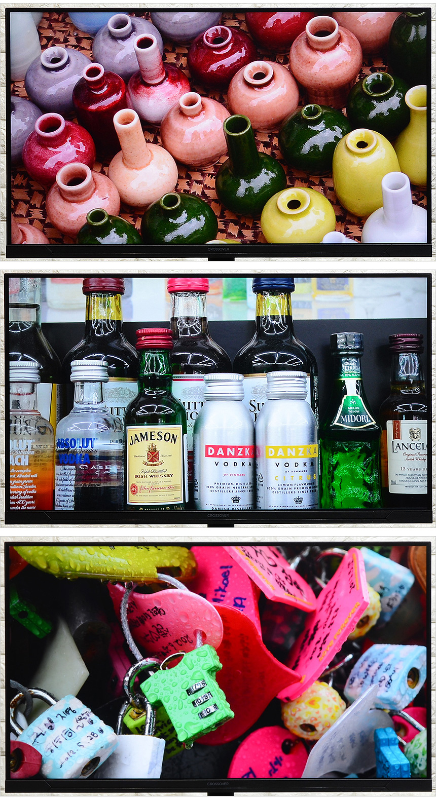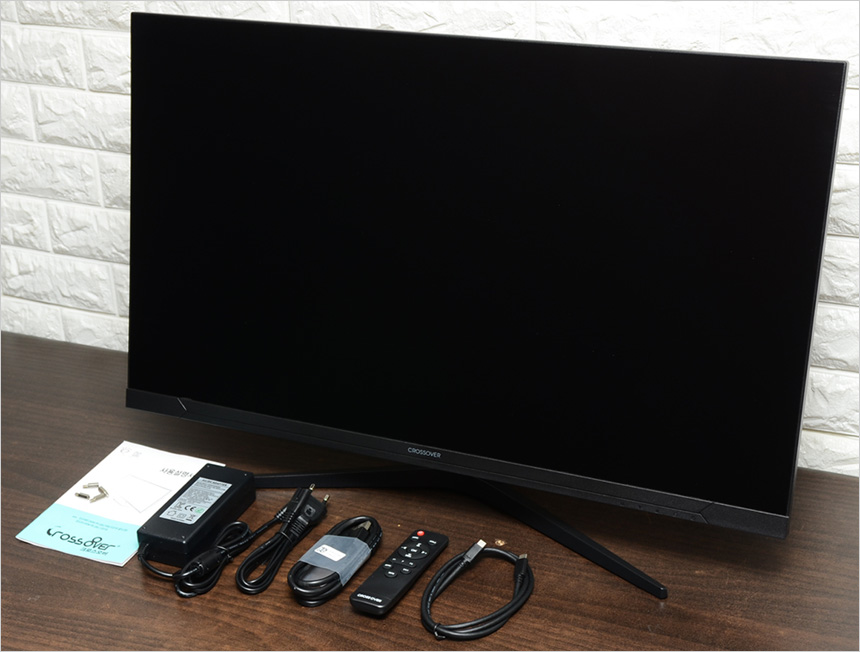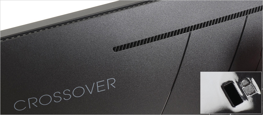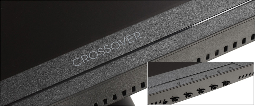 모니터 하단부의 모습으로 크로스오버 로고가 중앙에 세겨져 있으며 하단에는 OSD 버튼이 장착되어 모니터의 주요 기능을 손쉽게 조작할 수 있다. (참고로 리모콘을 제공해 더 편하게 조작할 수 있다.) 또한 통풍구가 설치되어 있고 두 개의 3W 스피커가 장착되어 시원한 사운드를 즐길 수 있다.