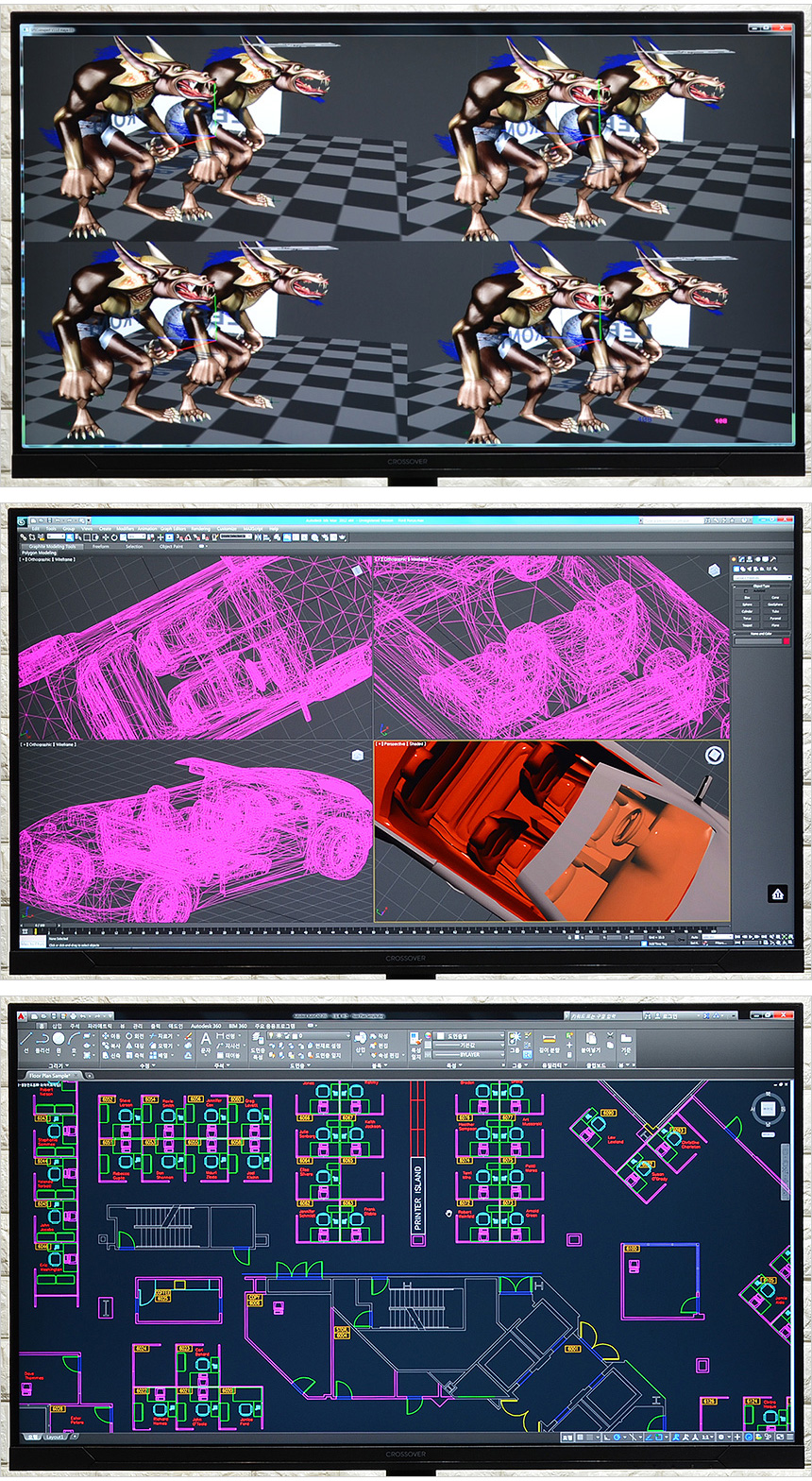 사진편집이나 디자인 등의 작업용 뿐만 아니라 캐드나 3D, 랜더링 과 같은 전문작업용으로도 유용하게 사용할 수 있다. 4K 해상도를 지원해 가는선 하나하나가 뭉개지지 않고 정확하게 표현되며 창작자가 의도한 컬러를 그대로 보여주기 때문이다. 특히 32형 대화면을 지원해 고해상도 에서도 답답함이 느껴지지 않았다.