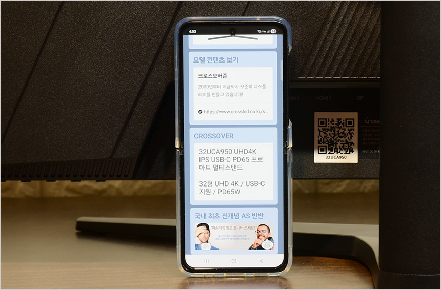 모니터 후면의 QR코드를 스캔하면 제조년월 확인이 가능하며 제품의 상세정보를 손쉽게 확인할 수 있다.