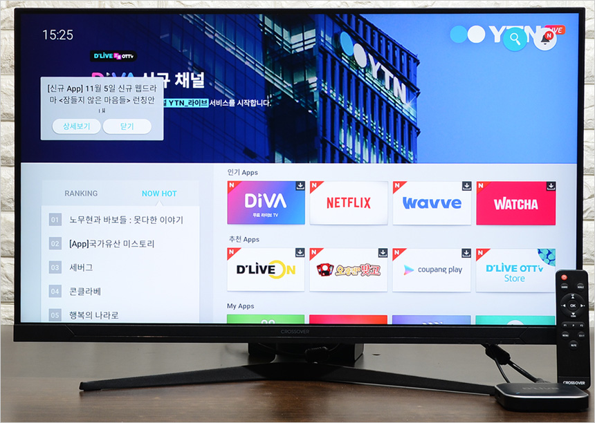 HDMI 단자를 지원해 노트북과 연결해 대화면을 통한 효율적인 멀티테스킹이 가능하다. 상단에서 확인한 것과 같이 3개 이상의 창을 띄어둘 수 있어 노트북 에서도 데스크탑 PC 수준의 작업이 가능하다. 또한 32형 고해상도 대화면 모니터로 TV와 같이 영상을 즐기는 용도로 유용하게 활용할 수 있다. 셋탑박스를 연결하면 바로 TV처럼 사용할 수 있으며 사진과 같이 OTT 플레이어를 연결해 넷플릭스나 웨이브 등의 OTT 서비스를 대화면으로 즐길 수 있다.