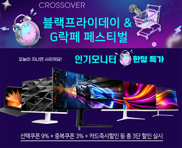 크로스오버는 자사의 인기 게이밍 고해상도 모니터들을 대상으로 ‘지마켓 옥션 11월 블랙프라이데이 & G락페 프로모션’을 펼친다.