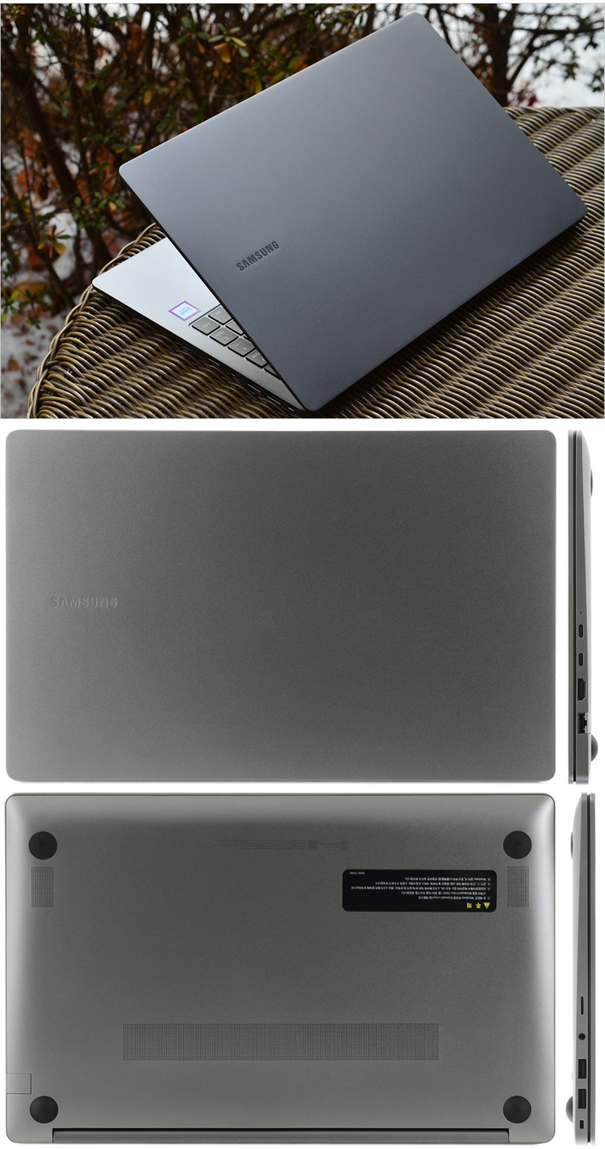 기기의 디자인은 기존 갤럭시북 시리즈와 같이 깔끔하고 세련된 것을 확인할 수 있다. 중후하고 고급스러운 그레이 컬러에 플라스틱 재질을 사용한 보급형 노트북들과 달리 메탈 바디를 적용해 무게를 줄이는 것과 함께 충격 등으로부터 제품을 보호한다. 특히 지문이나 먼지들이 잘 묻어나지 않아 깔끔하게 노트북을 관리할 수 있다. (마감의 완성도가 상당히 뛰어난 제품이다.)
