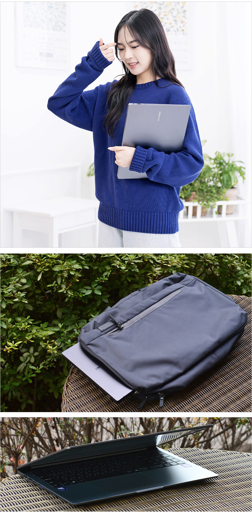 356.6 x 228 x 15.1 mm 의 크기와 1.55Kg 의 무게를 지원한다. 프리미엄 라인업인 프로 시리즈와 비교해도 손색없는 날렵한 두께와 가벼운 무게를 지원하는 노트북으로 백팩 뿐만 아니라 일반 서류가방에 넣고 다니며 외부에서 편하게 사용할 수 있다. 잦은 휴대가 필수적인 직장인이나 대학생에게 좋은 대안이 될 것이다.