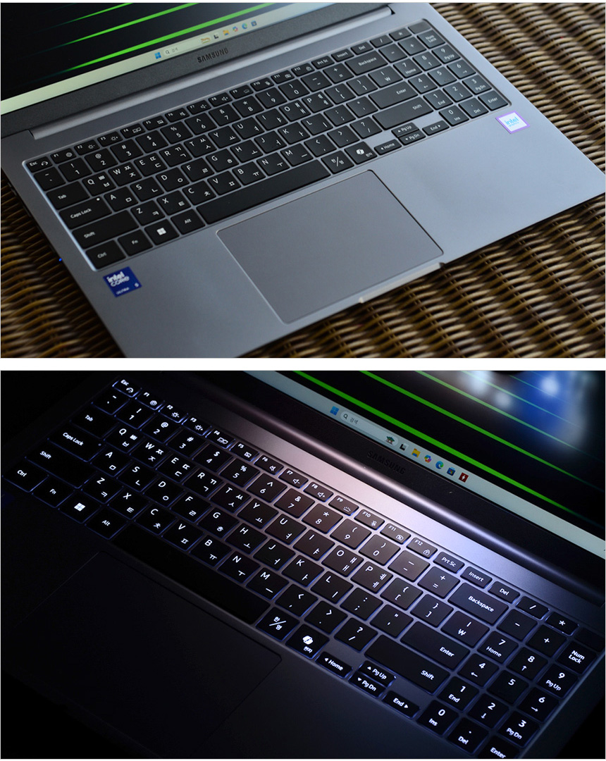 15.6형 대화면을 지원하는 노트북 답게 텐키가 포함된 풀사이즈 프로 키보드가 장착되어 있으며 (숫자 입력이 많은 엑셀등의 S/W를 편하게 사용할 수 있다.) ON/OFF 및 밝기 조정이 가능한 백라이트를 지원해 야간에도 편하게 노트북을 사용할 수 있다.