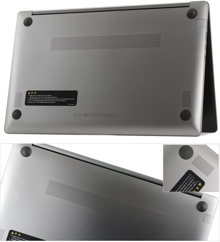 노트북 바닥면의 모습으로 사방에 고무패드가 부착되어 미끄러짐을 방지하며 차가운 공기가 원활하게 유입될 수 있도록 상단에 통풍구가 설치된 것을 확인할 수 있다. 또한 하단 양 측면에는 스피커가 장착되어 퀄리티 높은 사운드를 즐길 수 있다.