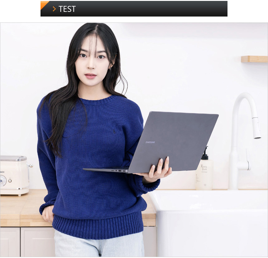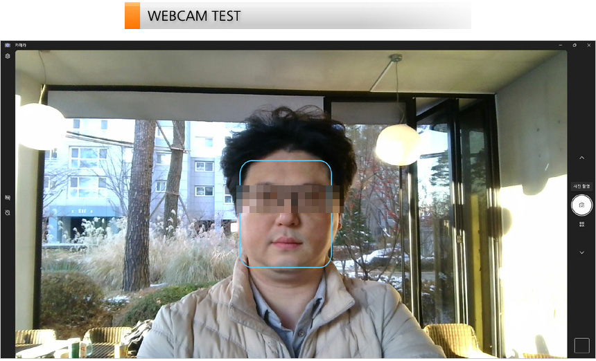 웹캠 화질을 테스트 하고 있는 모습으로 HD 웹캠을 지원했던 구형 갤럭시북 시리즈와는 확연히 비교되는 선명한 영상을 보여주었다. 재택근무나 출장 등으로 화상회의가 많은 유저들이라면 만족스럽게 사용할 수 있을 것이다.