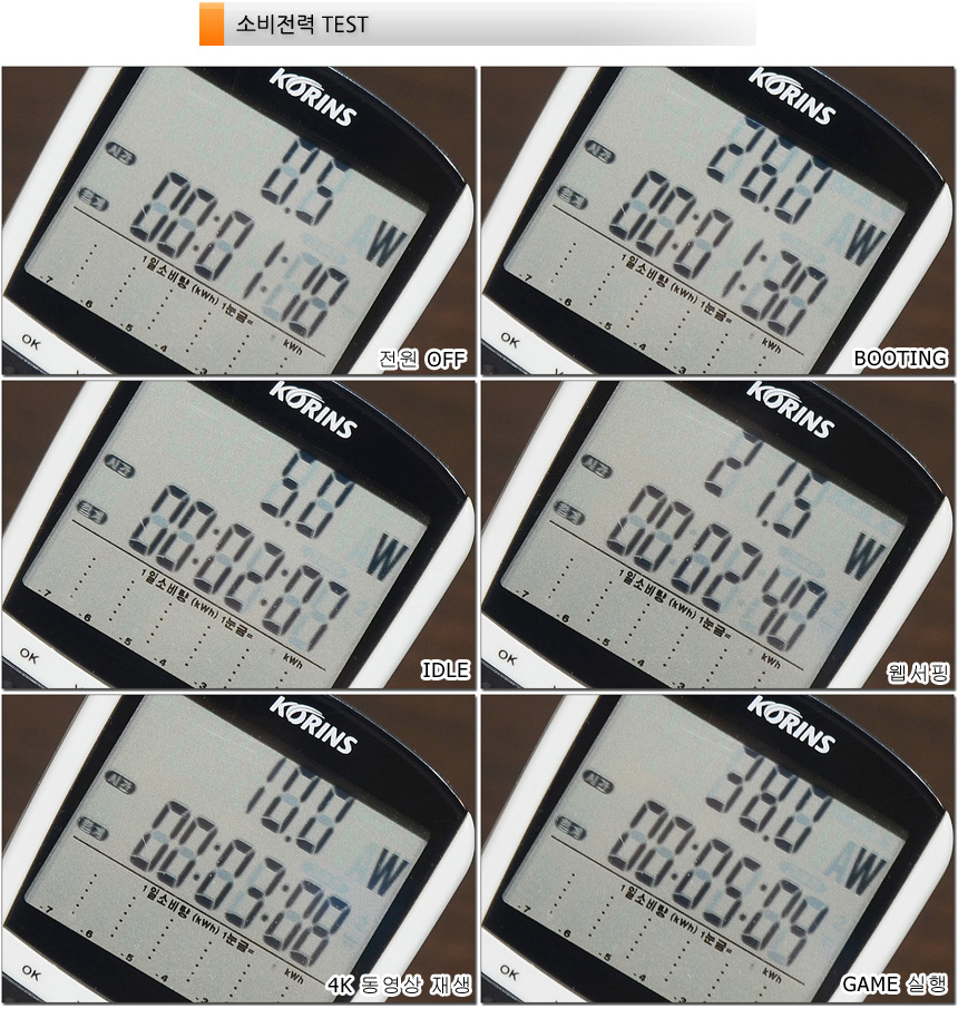 또한 팬소음 테스트를 실행했는데 아이들이나 문서작업 등의 캐주얼한 작업시에는 팬소음이 거의 들리지 않았으며 게임 실행시에는 팬소리가 커지긴 했지만 스피커 사운드에 묻히는 수준으로 크게 신경쓰이지 않았다. @ 측정값은 팬소음이 아니고 팬소음을 포함한 사무실 전체의 소음을 뜻한다.