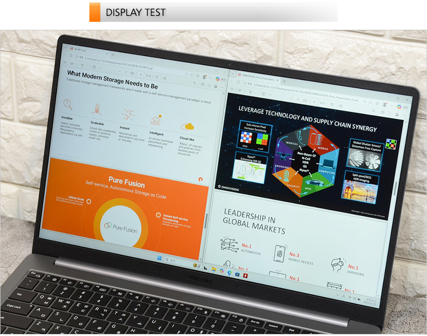 프리미엄 노트북 수준의 세련된 디자인과 다양한 고급기능 지원이 인상적이었다. 이번에는 지원 기능을 살펴보고 다양한 테스트를 통해 성능을 확인해 보도록 하자. @ 리눅스 탑재 모델로 임의로 윈도우 11을 설치후 테스트를 진행했다. 이점 참조 바란다.