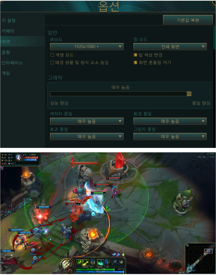 리그오브 레전드를 매우높음 옵션에서 플레이 하고 있는 모습으로 (연습모드) 171-248 프레임을 보여주어 부드럽게 게임을 즐길 수 있었다. 멀티게임도 원활하게 플레이 할 수 있을 것이다.