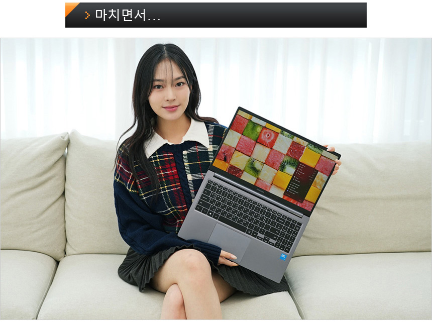 15.6형 대화면 디스플레이 탑재로 시원한 영상을 즐길 수 있으며 날렵하고 가벼울 뿐만 아니라 긴 배터리 사용시간과 PD충전 지원으로 집이나 사무실 뿐만 아니라 외부에서도 편하게 사용할 수 있다. 또한 AI에 특화된 CPU 와 다양한 S/W를 지원해 활용성을 한층 높였다.