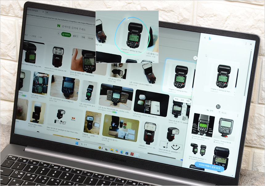 프로 시리즈에서만 지원했던 AI 셀렉트를 갤럭시북 에서도 사용할 수 있다. 상단의 사진은 앱을 활용하고 있는 모습으로 궁금한 이미지나 텍스트가 있을 때 별도의 검색어를 입력할 필요없이 터치로 원을 그려주면 빠르게 검색되는 것을 확인할 수 있었다. (동영상을 통해 사용방법을 자세히 확인하기 바란다.)