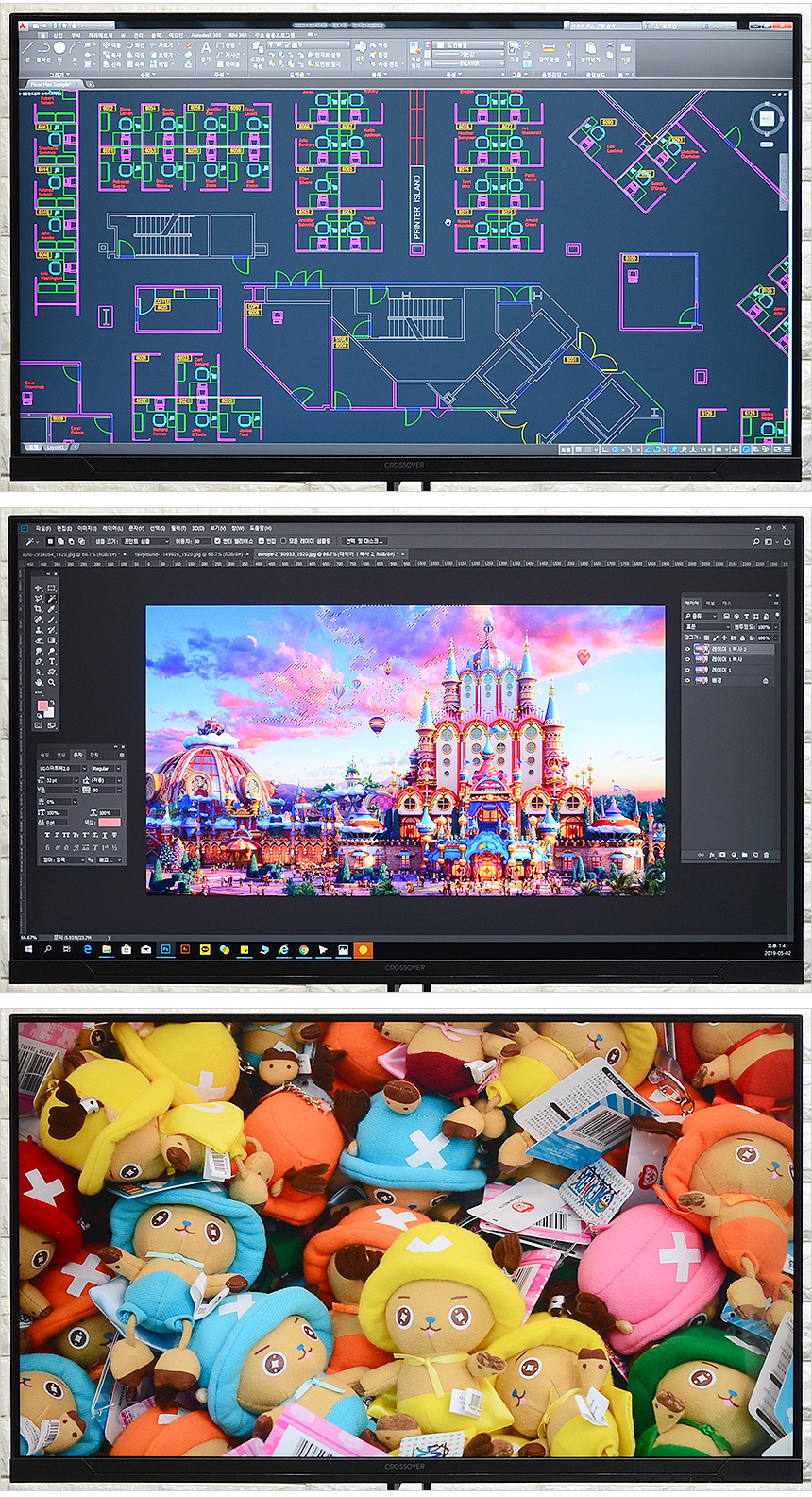 참고로 이 제품은 사진편집이나 디자인 뿐만 아니라 높은 디테일을 필요로 하는 캐드나 3D 작업등의 용도로도 활용할 수 있다. 확대시 뭉개져 명확하게 선을 확인하기 힘는 저해상도 모니터와 달리 얇은선 하나하나를 확연하게 구분할 수 있었다.