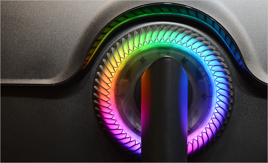 스탠드를 장착하는 후면 중앙과 양 측면에 RGB LED 백라이트가 적용되어 아름다운 조명효과를 즐길 수 있다. (기존 모델대비 LED가 상당히 진하고 밝아졌다.)