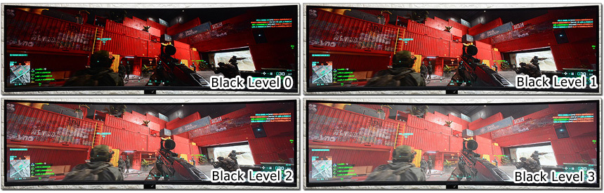 4단계 블랙레벨 설정을 지원해 사용자의 실행 게임이나 취향에 따라 조절할 수 있다. 과도하게 어두운 맵 등에서 유용하게 사용할 수 있을 것이다. (무조건 블랙레벨을 높게 설정한다고 좋은게 아니다. 밝아지는 만큼 색 표현력이 떨어지기 때문이다.)