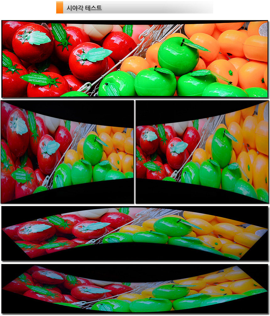 시야각 테스트를 진행하고 있는 모습으로 기존의 VA 계열의 패널과는 확연히 다른 선명한 영상을 보여주었다. 극단적인 각도에서도 채도저하나 반전등의 현상이 발생하지 않아 어떤 자세에서도 불편없이 모니터를 사용할 수 있을 것이다.