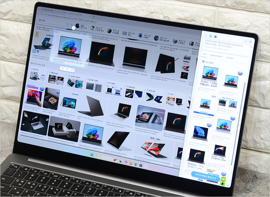 AI 셀렉트를 실행한 모습으로 궁금한 이미지나 텍스트가 있을 때 별도의 검색어를 입력할 필요없이 터치로 원을 그려주면 빠르게 검색되는 것을 확인할 수 있었다. QR코드가 나왔을 때 원만 그려주면 해당 URL로 자동 이동된다. (일반 노트북과 달리 터치를 지원해 스마트폰과 같이 편하게 활용할 수 있을 것이다.)