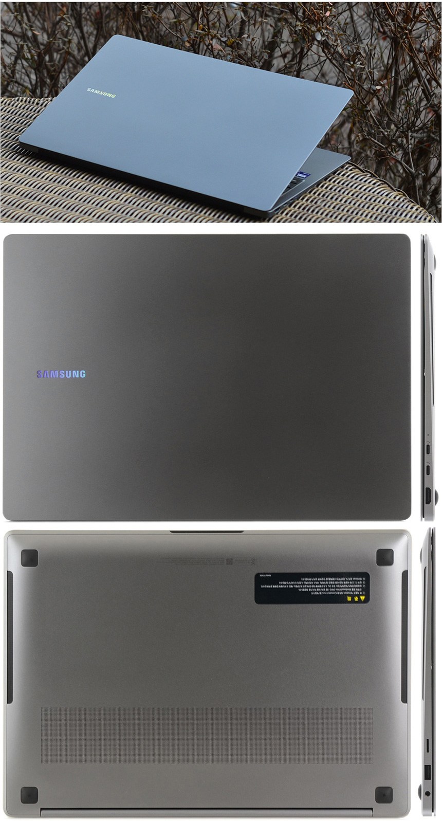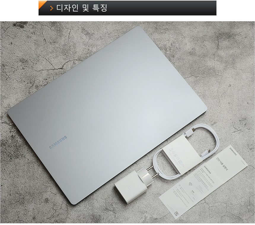 노트북의 디자인은 삼성의 프리미엄 라인업인 갤럭시북 프로 시리즈의 최신작 답게 상당히 고급스러운 것을 확인할 수 있었다. 기존 갤럭시북 프로 시리즈와 같이 고급스러운 느낌을 한껏 살렸다. 알루미늄 소재를 사용해 좋은 질감을 제공하는 것은 물론 높은 내구성을 구현하며 중후한 그레이 컬러에 최고 수준의 마감 완성도 등 보급형 모델들과는 확연히 다른 스타일을 보여주었다.