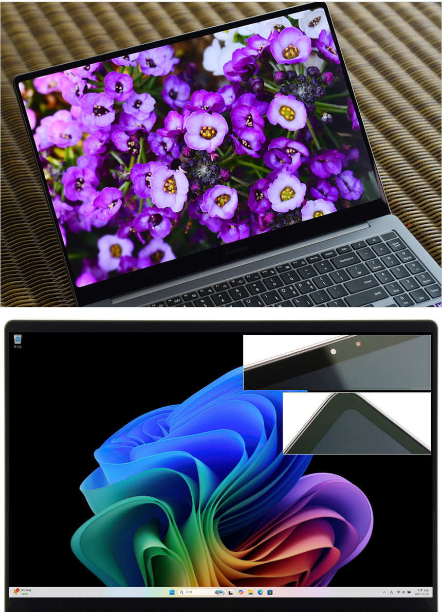다이나믹 AMOLED 2X 디스플레이를 탑재한 노트북으로 시야각 없는 선명한 영상을 즐길 수 있다. 상단의 사진은 시야각 테스트를 진행하고 있는 모습으로 극단적인 각도에서도 시야각으로 인한 불편은 느껴지지 않았다.