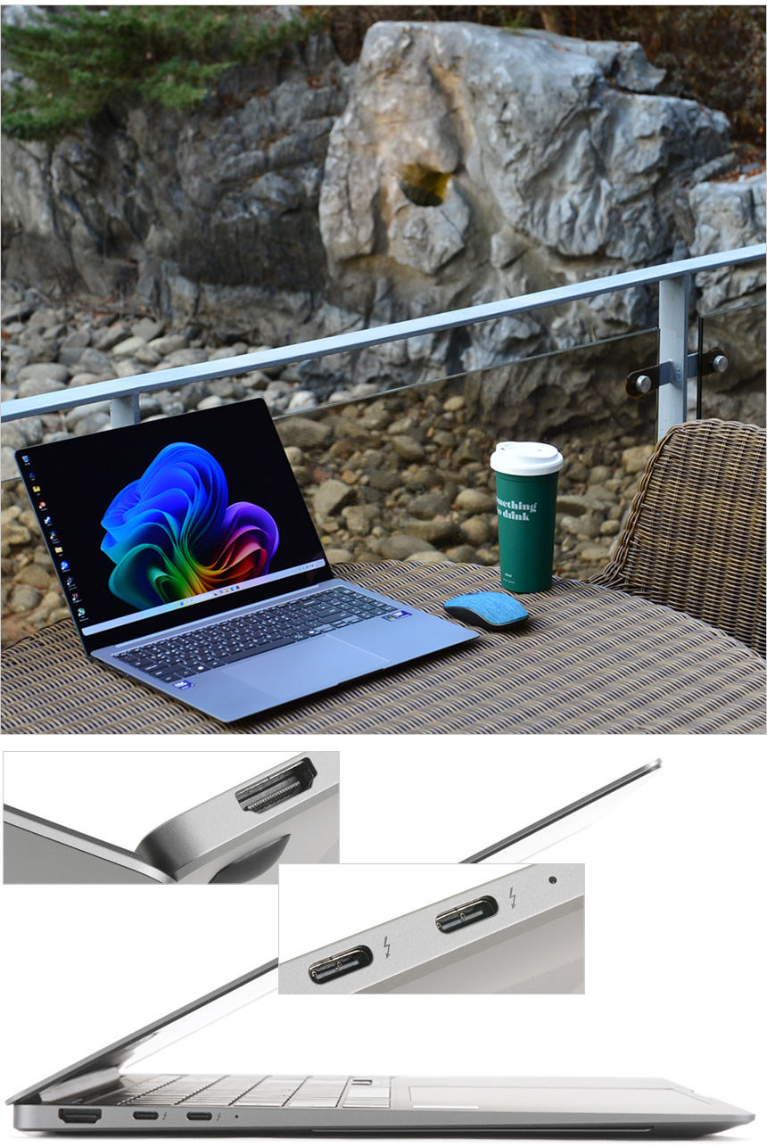 FHD 해상도를 지원하는 보급형 노트북들과 달리 WQXGA+ 고해상도를 지원하는 AMOLED 디스플레이를 탑재해 밝고 선명한 영상을 즐길 수 있으며 터치를 지원해 어디서나 편하게 노트북을 조작할 수 있다. 뿐만 아니라 최대 40TOPS를 지원하는 강력한 NPU 탑재로 생성형 AI도 편하게 활용할 수 있으며 썬더볼트 4 단자를 지원해 빠른 데이터 전송은 물론 PD충전이나 디스플레이 출력과 같은 고급기능 활용이 가능하다.