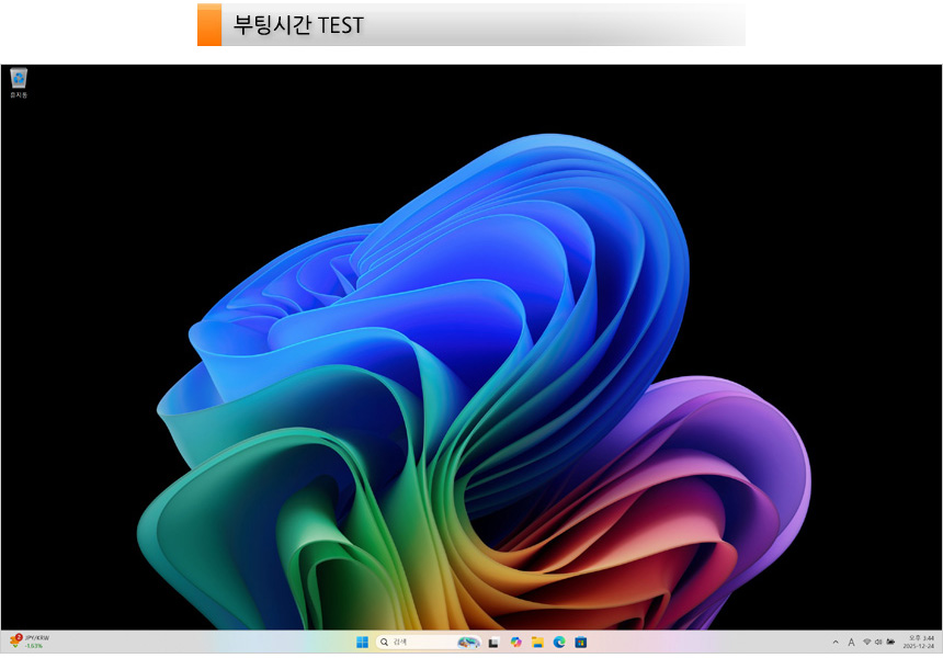 노트북이 완전히 꺼진 상태에서 전원 버튼을 눌러 바탕화면이 노출될 때 까지의 시간 (콜드부팅) 을 측정했는데 14초가 소요되었다. 기다림의 지루함 없이 노트북을 사용할 수 있을 것이다.