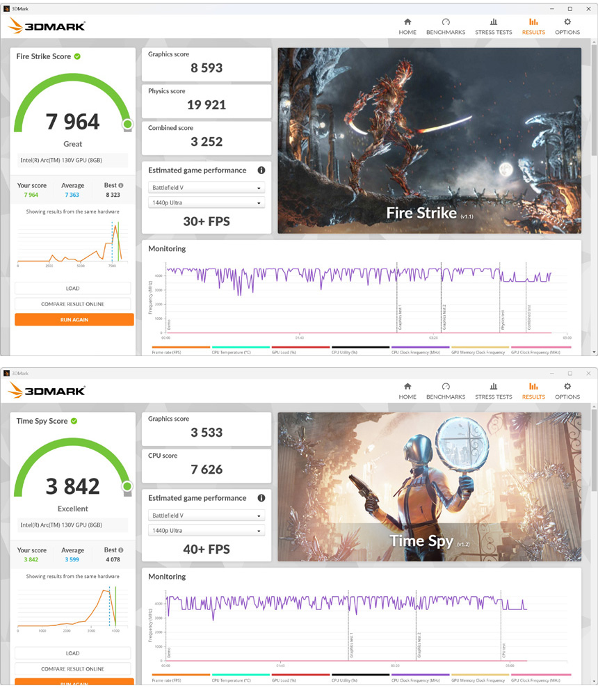 3DMARK를 이용해 3D 성능을 확인하고 있는 모습으로 인텔 아크 130V 내장그래픽을 사용해는 모델답게 스코어가 상당히 높은 것을 확인할 수 있다. 캐주얼한 3D 게임 뿐만 아니라 일부 최신 게임도 옵션 조정을 통해 즐길 수 있다.