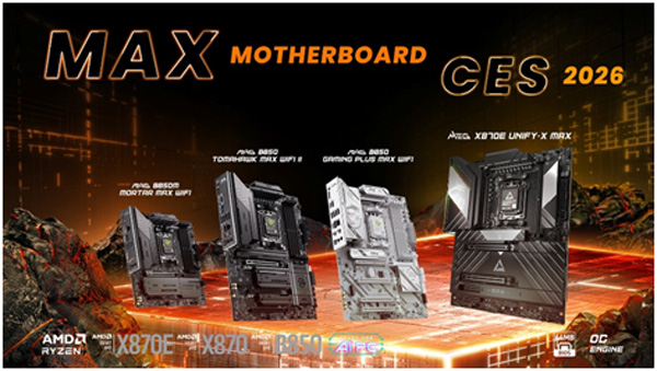MSI는 CES 2026에서 AMD X870(E) 및 B850 칩셋을 기반으로한 최신 MAX 시리즈 메인보드를 선보인다. 해당 라인업은 다양한 성능 요구를 충족하도록 설계되었으며, 모든 MAX 모델에는 비동기 BCLK 제어를 지원하는통합 OC Engine이 탑재되어 정밀한 주파수 튜닝이 가능하다. 이를 통해 지원환경에서 최대 15% 향상된 게이밍 성능을 제공한다.