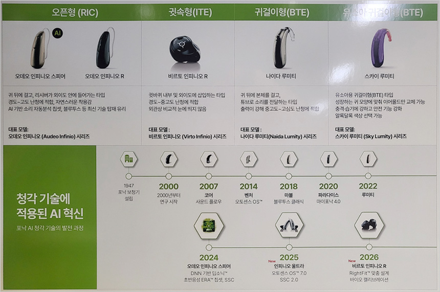 이와함께 AI 기반의 보청기 시장의 기준이 얼마나 크게 들리느냐에서 얼마나 정확하게 이해하게 하느냐 로 바뀌고 있음을 전했다. 포낙에 따르면 글로벌 조사 결과 보청기 사용자들의 가장 큰 불만요인은 시끄러운 환경에서 말소리 이해가 어려운 점으로 나타났다며 소음속 말소리를 이해하는 성능이 AI 보청기 시장의 핵심 경쟁요소로 부상하고 있다고 설명했다.