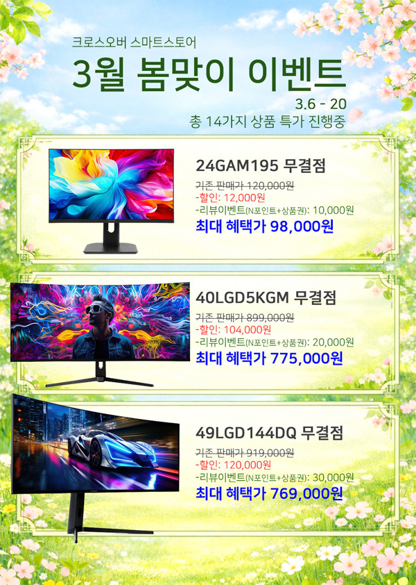 크로스오버는 자사의 인기 게이밍, 고해상도 모니터들을 대상으로 “만물이 소생하는 봄맞이 인기 모니터 할인 특가전”을 펼친다.