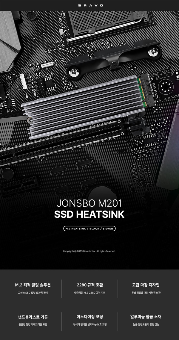 브라보텍에서 JONSBO의 SSD 방열 솔루션 M201 및 M202 SSD HEATSINK를 신규 출시한다. M201과 M202는 고성능 M.2 및 NVMe SSD 사용 시 발생하는 발열과 이로 인한 성능 저하를 효과적으로 해소할 수 있도록 설계된 SSD 전용 쿨링 솔루션이다.
