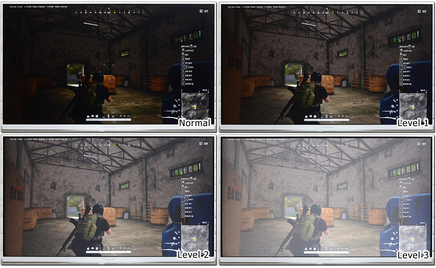 3단계 블랙레벨 설정을 지원해 게임 등에서 요긴하게 사용할 수 있다. 적절한 블랙레벌 조정을 통해 보다 선명한 영상을 즐길 수 있다. (블랙레벨을 너무 올리면 선명도가 떨어지게 된다. 게임에 맞는 적정값을 파악하고 적용하기 바란다.)