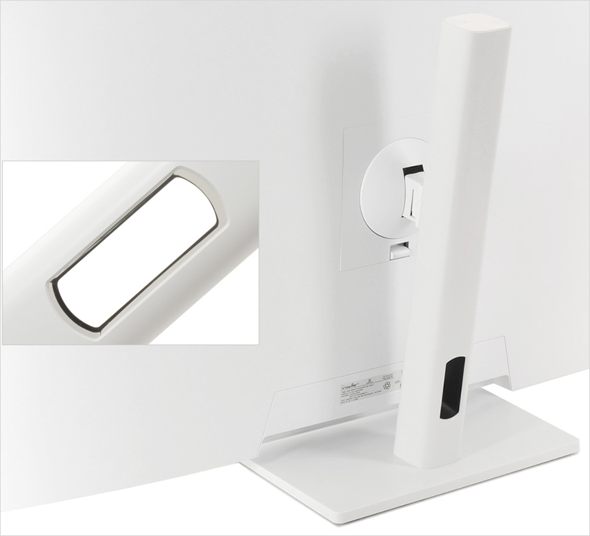 모니터의 디자인은 심플하지만 고급스러운 느낌을 충분히 살렸다. 화사한 화이트 컬러를 적용하고 마감도 양호한 것을 확인할 수 있었으며 후면부에 곡선의 미를 살린점도 아주 마음에 든다. 오래봐도 질리지 않는 깔끔함을 선호한다면 만족하며 사용할 수 있을 것이다. (일반 모니터 대비 스탠드 디자인도 상당히 고급스럽다.)