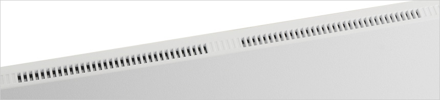 심플하지만 멋스러운 모니터 후면부의 모습으로 상단에 통풍구가 설치된 것을 확인할 수 있다. 이 제품은 아이케어 기술이 적용된 모델로 안티글레어 타입에 블루라이트 감소 기능과 깜빡임을 방지하는 플리커 프리를 지원해 시력저하를 방지하며 눈의 피로를 최소화 한다.
