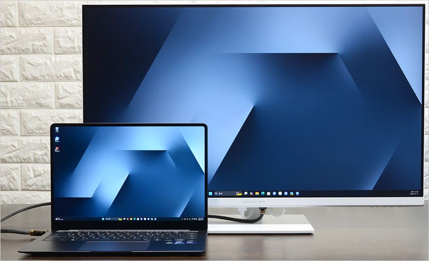 2개의 HDMI 단자를 지원해 노트북과 연결해 대화면으로 영상을 즐길 수 있다. 특히 사용하는 노트북이 고성능이지만 60Hz 주사율을 지원할 경우 연결만으로 게이밍 머신으로 변신시킬 수 있다. (100Hz 주사율을 지원해 훨씬 부드럽게 게임을 플레이 할 수 있다.) 또한 PS5 나 XBOX 와 같은 게임콘솔과 연결해 게임을 즐길 수 있으며 최근 많은 유저들이 사용하고 있는 게이밍 UMPC와 연결해 대화면으로 게임을 플레이 할 수 있다.