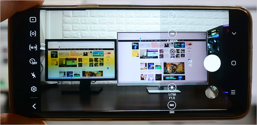 모니터 깜빡임으로 인한 눈의 피로를 최소화 하기 위해 플리커 프리 기술을 지원한다. 상단의 사진은 테스트를 위해 일반 모니터를 추가로 셋팅한 모습으로 큰 차이가 없는 것을 확인할 수 있다. 스마트폰의 카메라 기능을 이용하면 모니터의 플리커 현상을 확인할 수 있다. (프로 모드에서 셔터스피드 1/300 이상으로 셋팅) 테스트용 모니터는 플리커 현상이 발생하는데 반해 크로스오버 32QD100WM는 깜빡임 없이 부드러운 영상을 재생해 주었다. (동영상에서 자세히 확인할 수 있다.)