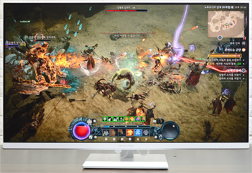 디아블로 4와 포르자 호라이즌5를 플레이 하고 있는 모습으로 32형 대화면에 슬림 베젤을 적용해 눈에 꽉 들어찬 시원한 영상을 즐길 수 있었으며 (20형대 모니터와는 몰입감에서 엄청난 차이를 보여주었다.) FHD 모니터와는 확연히 비교되는 높은 디테일이 인상적이었으며 프리싱크와 지싱크 호환 기술을 지원해 화면 찢어짐 등의 불편없이 게임에 몰입할 수 있었다. (IPS 특유의 진한 색감이 특히 인상적이었다.)
