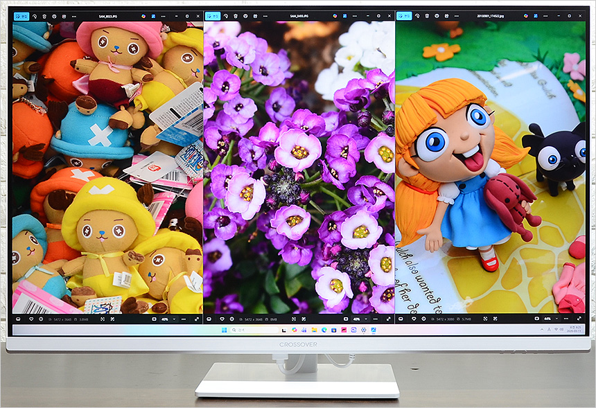 원본 JPG 파일을 재생하고 있는 모습으로 QHD 해상도를 지원해 FHD 모니터와 디테일에서 분명한 차이를 경험할 수 있었으며 IPS 특유의 진한 색감이 인상적이었다. 이 제품은 화면 크기가 크고 해상도도 높아 심플한 작업 뿐만 아니라 높은 디테일을 요구하는 캐드 등의 작업용으로도 활용할 수 있다.