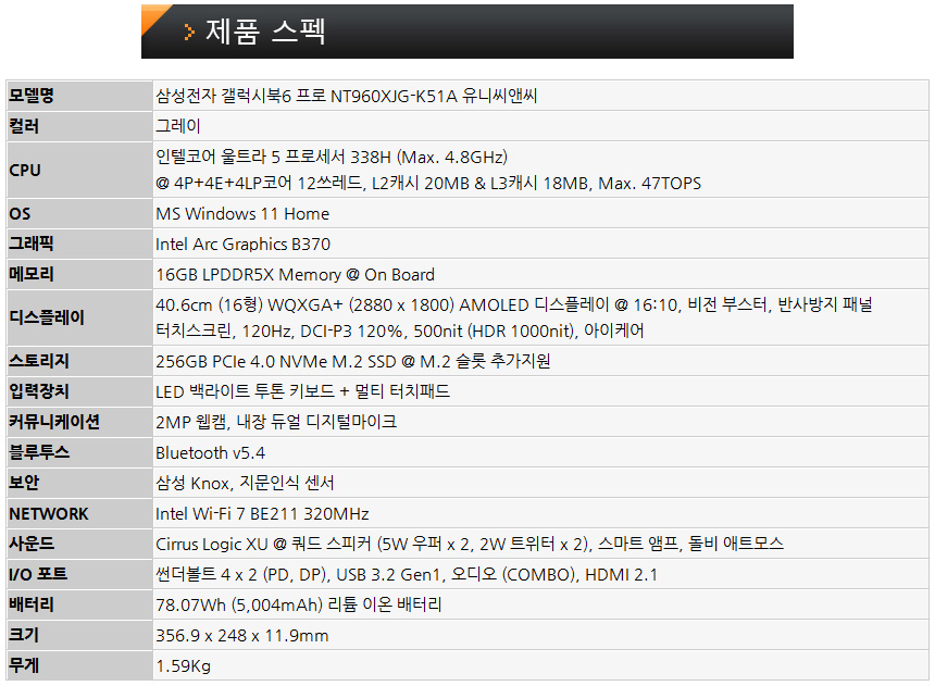 @ 삼성전자 갤럭시북6 프로 NT960XJG-K51A 유니씨앤씨 보러가기