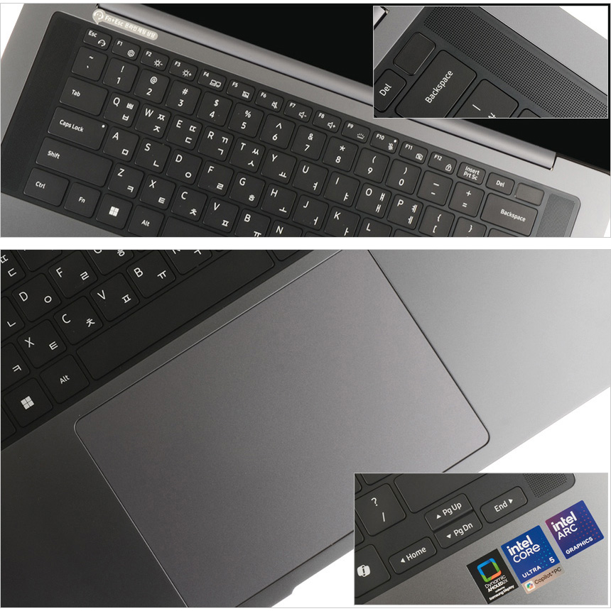 뿐만 아니라 인텔 Wi-Fi 7 무선랜카드와 지문인식 센서, 고화질 웹캠이 설치된 것도 확인할 수 있으며 윈도우 11 Home 이 기본 탑재되어 정품OS가 필수적인 환경에서도 제약없이 사용할 수 있다. (참고로 인텔코어 울트라 5 에서는 338H 만 아크 내장그래픽을 지원한다.)
