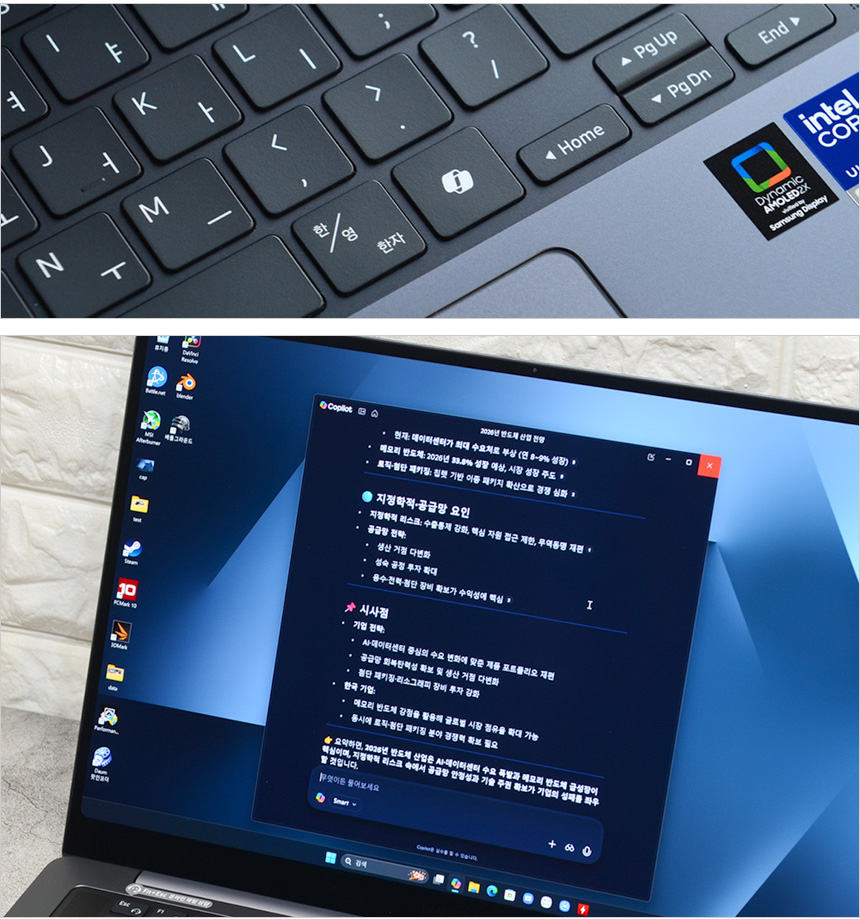 인텔의 1.8나노미터급 초미세 반도체 공정 기술인 18A를 기반으로 개발된 팬서레이크를 탑재한 삼성전자 갤럭시북6 프로 NT960XJG-K51A는 CPU 성능이 최대 1.45배, GPU 성능은 최대 1.75배 향상되어 게이밍이나 크리에이터 노트북 수준의 강력한 성능을 경험할 수 있다. 또한 최대 47TOPS를 지원하는 NPU를 탑재해 다양한 AI 애플리케이션을 부드럽게 실행할 수 있다.