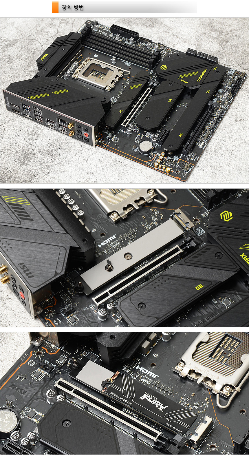 최근 출시되는 중급형과 고급형 메인보드가 PCIe 5.0 인터페이스를 지원해 최대 속도로 SSD를 사용할 수 있다. SATA 인터페이스와 달리 슬롯에 장착후 볼트로 고정만 해주면 설치가 완료되기 때문에 초보자들도 손쉽게 SSD를 장착할 수 있다. 참고로 테스트에 사용된 메인보드이 경우 Ez클립을 제공해 드라이버를 사용할 필요도 없었다.