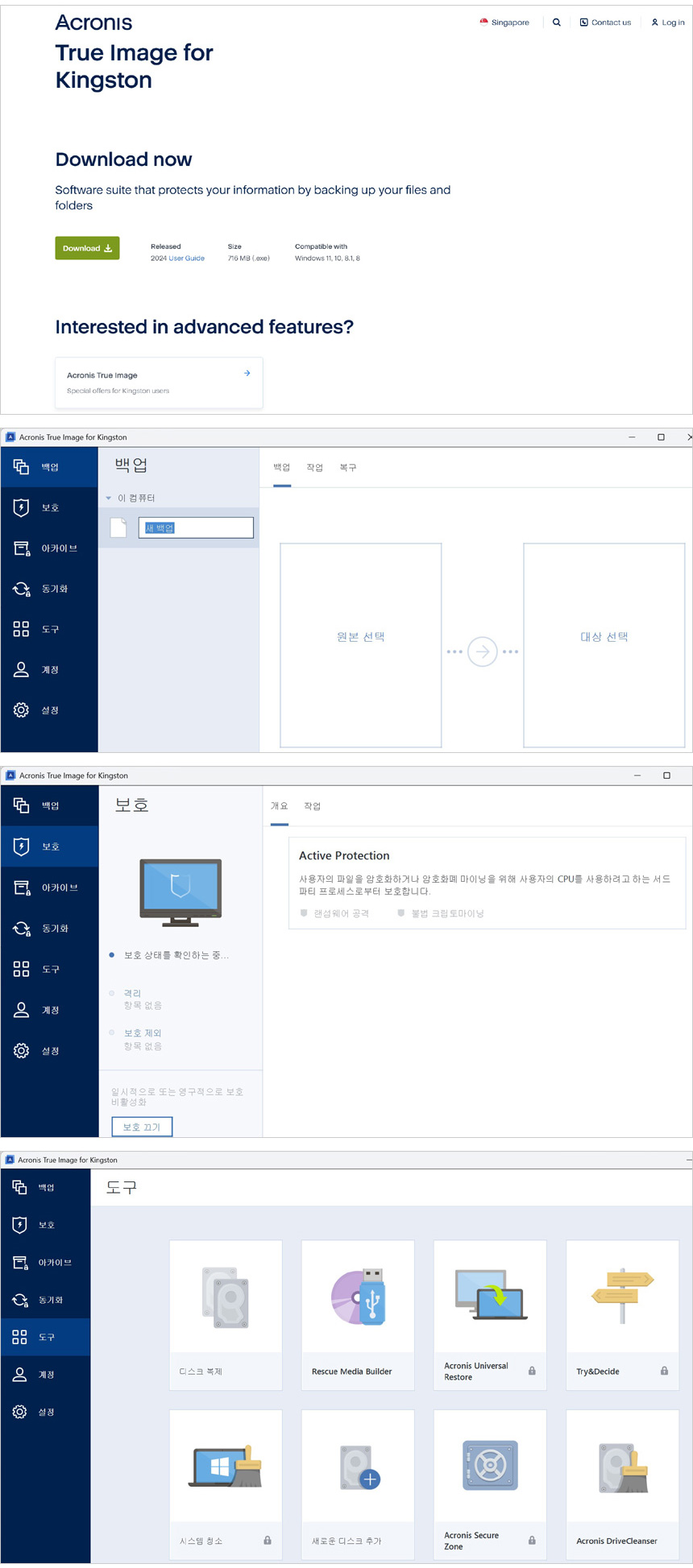 킹스톤에서 전용 S/W를 제공해 모니터링이 가능하며 드라이브 이벤트 상황을 한눈에 파악할 수 있다. 또한 펌웨어 업데이트를 통해 최상의 컨디션으로 SSD를 사용할 수 있으며 아크로니스 트루이미지 1년 무료 구독권을 제공해 백업과 복원등을 간편하게 실행할 수 있다.