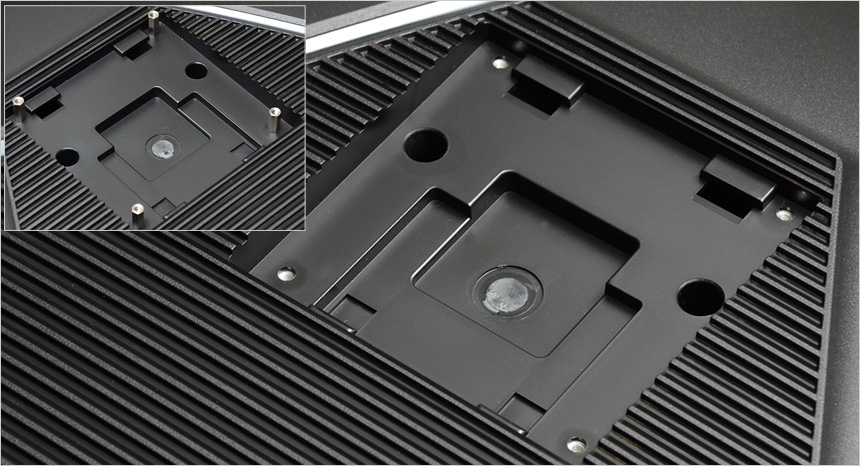 스탠드의 모습으로 깔끔한 디자인이 돋보이며 바닥면에는 패드가 부착되어 미끄러짐을 방지한다. 또한 하단에 홀이 설치되어 케이블을 깔끔하게 정리할 수 있다. (틸트 기능을 지원해 사용자에 맞는 최적의 각도를 손쉽게 조절할 수 있다.)