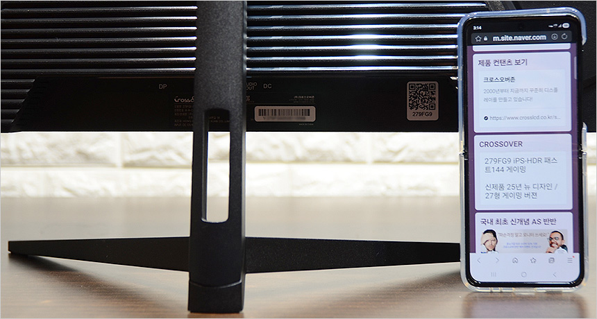 모니터 후면에 부착된 QR코드 스티커를 스마트폰으로 스캔하면 제조년월 확인이 가능하며 제품의 상세정보를 손쉽게 확인할 수 있다.